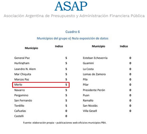 El informe de la ASAP sobre el municipio de Merlo concluye contundentemente de esta manera: