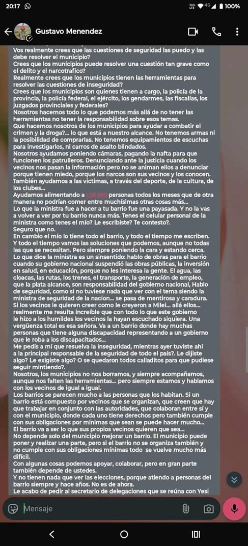 INCREÍBLE RESPUESTA DEL INTENDENTE MENÉNDEZ A UNA VECINA ALLEGADA A LA VICTIMA DE LA VIOLACIÓN DEL BARRIO NUEVA ESPERANZA: “LA SEGURIDAD NO ES MI RESPONSABILIDAD”
